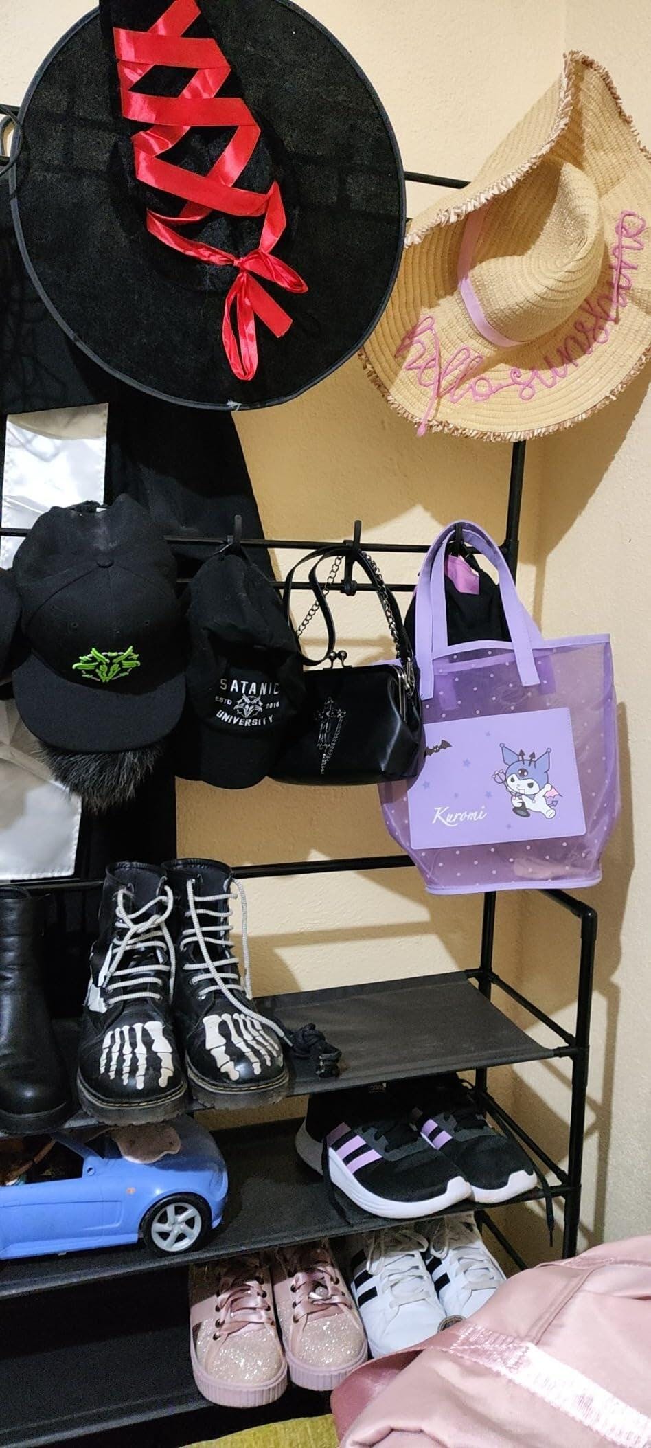 Cuier pentru haine cu suport pantofi, 5 rafturi , lungime 80 cm, Negru