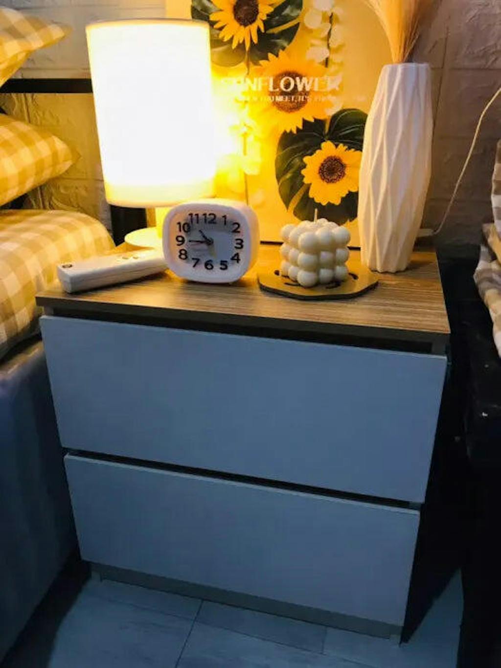 Fabricată din panouri rezistente la zgârieturi, ușor de curățat și protejate împotriva umezelii, această noptieră este ideală pentru utilizare zilnică. Cele două sertare spațioase oferă loc suficient pentru depozitarea cărților, accesoriilor sau obiectelor personale, menținând dormitorul ordonat.